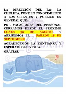 Vacaciones verano2021 Ago 23, 2021 | 0 Comentarios Enviar comentario Cancelar la respuestaTu dirección de correo electrónico no será publicada. Los campos obligatorios están marcados con *Comentario * Nombre * Correo electrónico * Web Δ